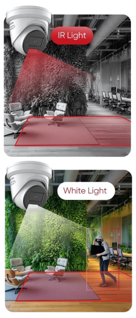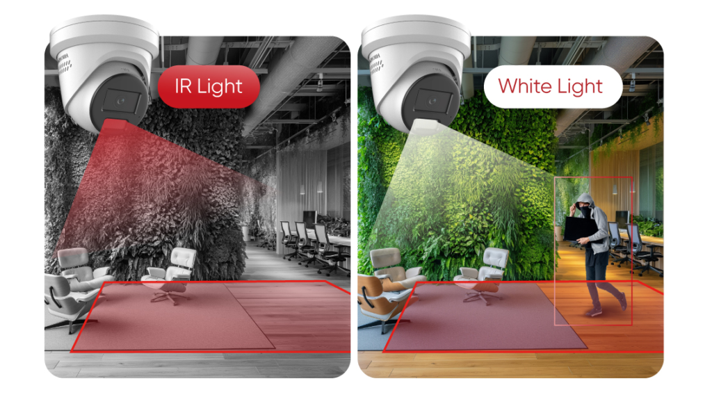 Switches between IR, white, or smart lighting to keep intruders visible in full colour — even in low light.